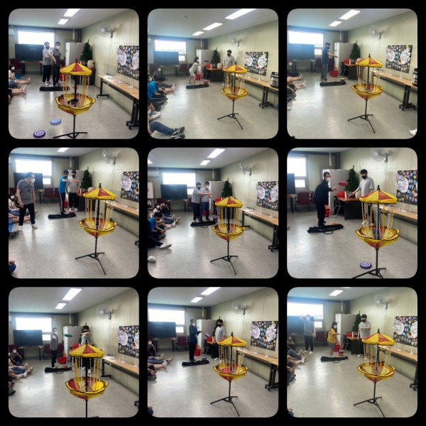 플라잉 디스크와 디스크 캐쳐를 이용하여 디스크 골프를 진행하였습니다.