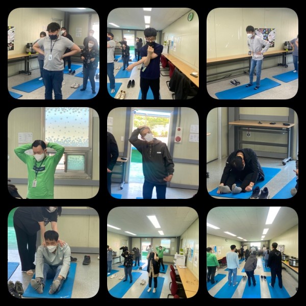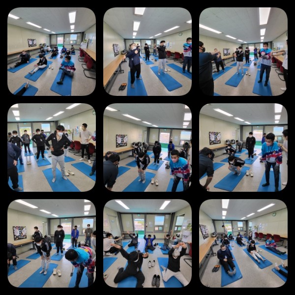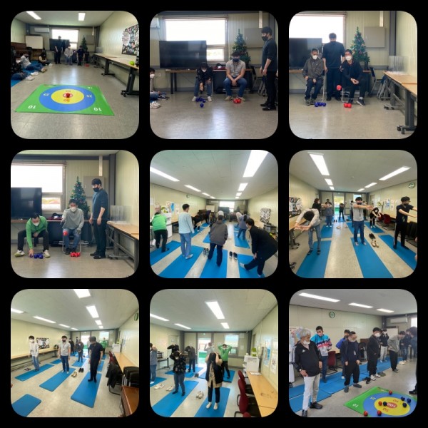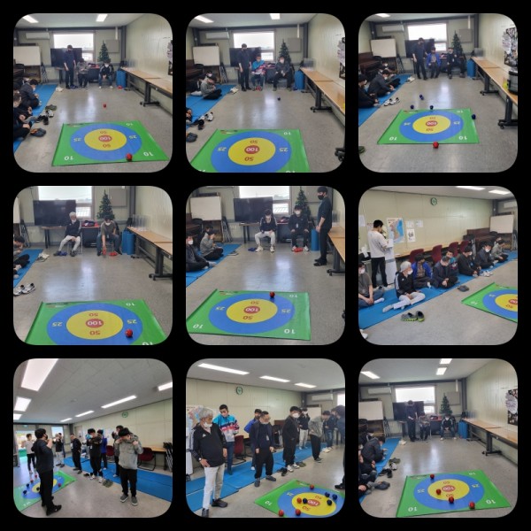 매트를 활용한 스트레칭 및 점수판에 공넣기를 진행하였습니다.