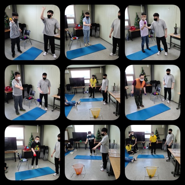 골대에 손으로 폼폼이 던져 넣기를 하였습니다!