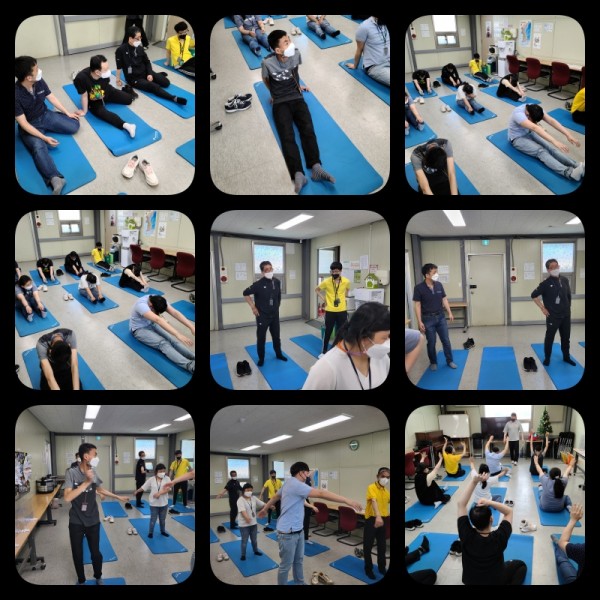 다치지않게 매트체조로 몸을 풀어준 후